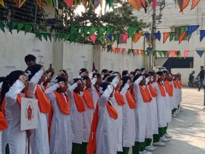 Children celebrating republic day on 26th Jan 1950, The day on which the constitute of India came into effect.